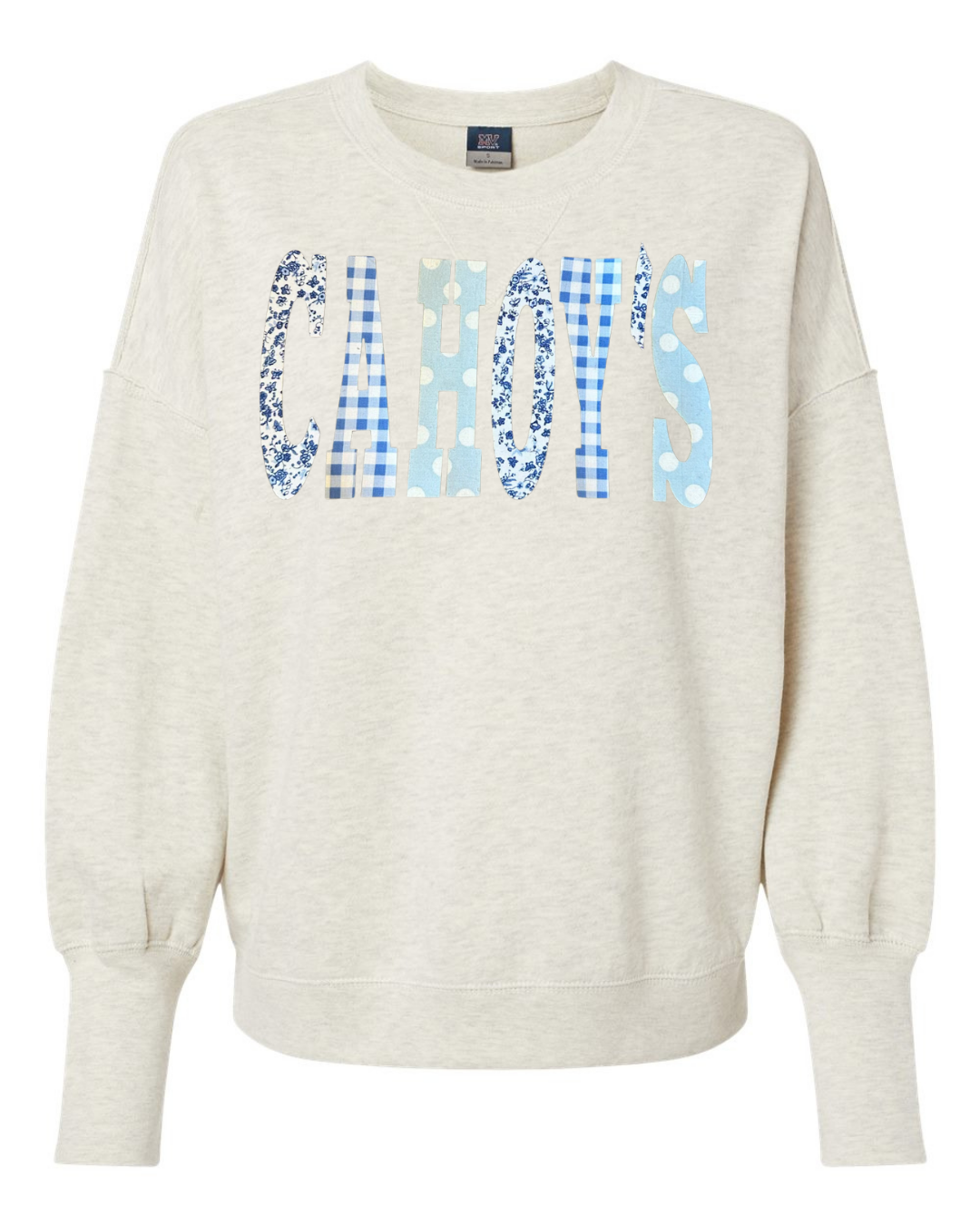 PATCHWORK CAHOY'S - OATMEAL SUEDED CREW