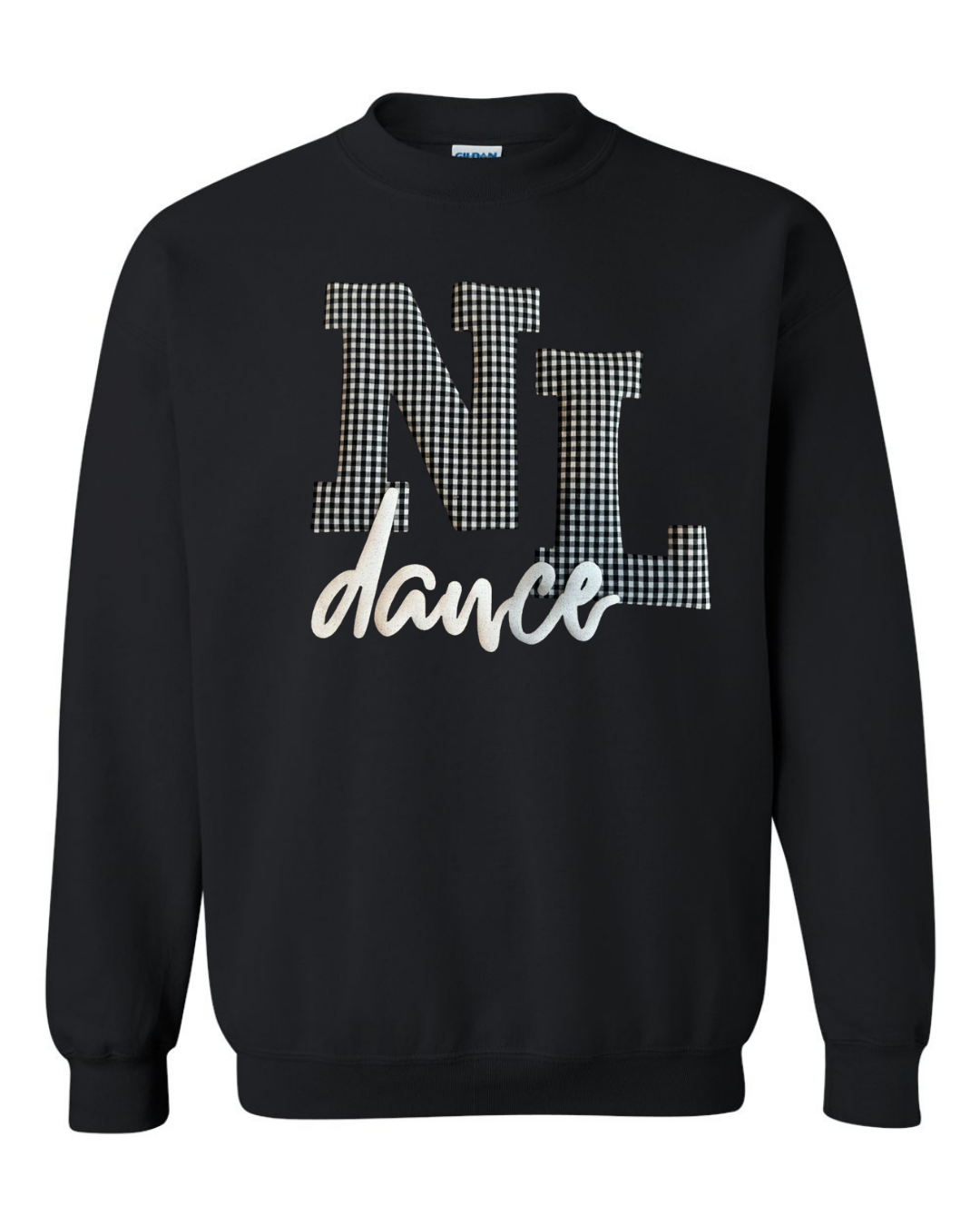 BLACK/WHITE GINGHAM NL WHITE DANCE - BLACK GILDAN CREW - YOUTH + ADULT