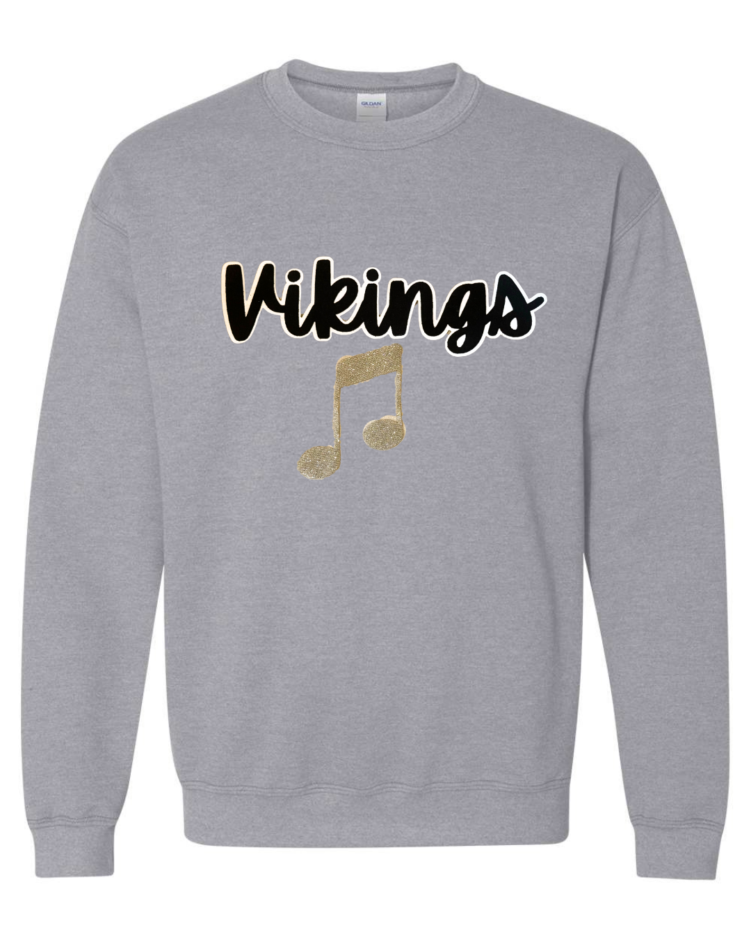 BLACK/WHITE VIKINGS + GOLD SPARKLE MUSIC NOTE - SPORT GREY GILDAN CREW