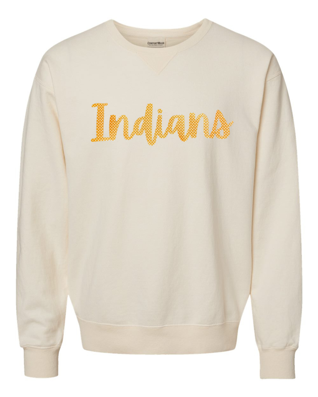 CURSIVE ORANGE/WHITE POLKA DOT INDIANS - IVORY COMFORTWASH CREW