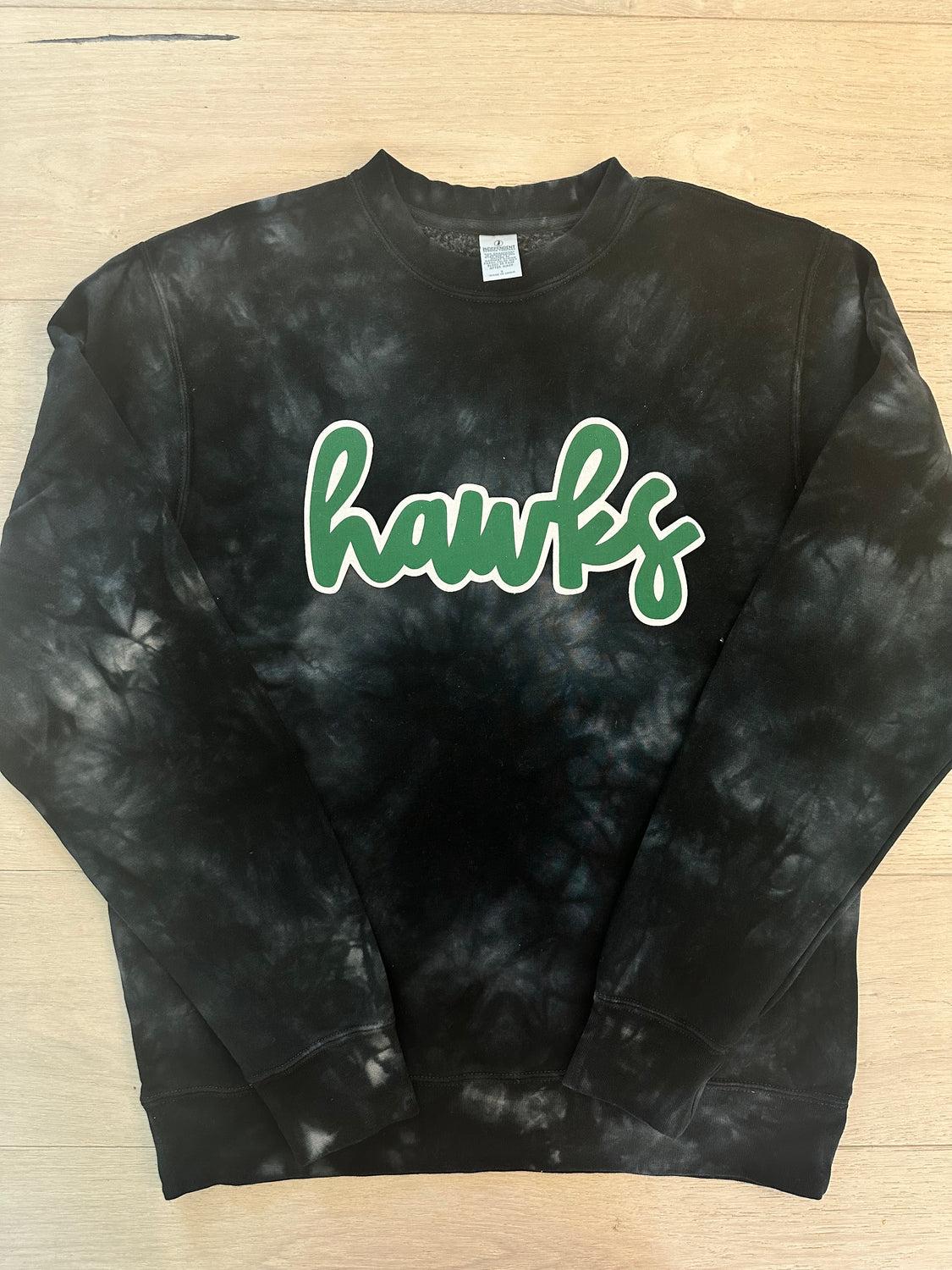 GREEN/WHITE HAWKS - BLACK DYED CREW