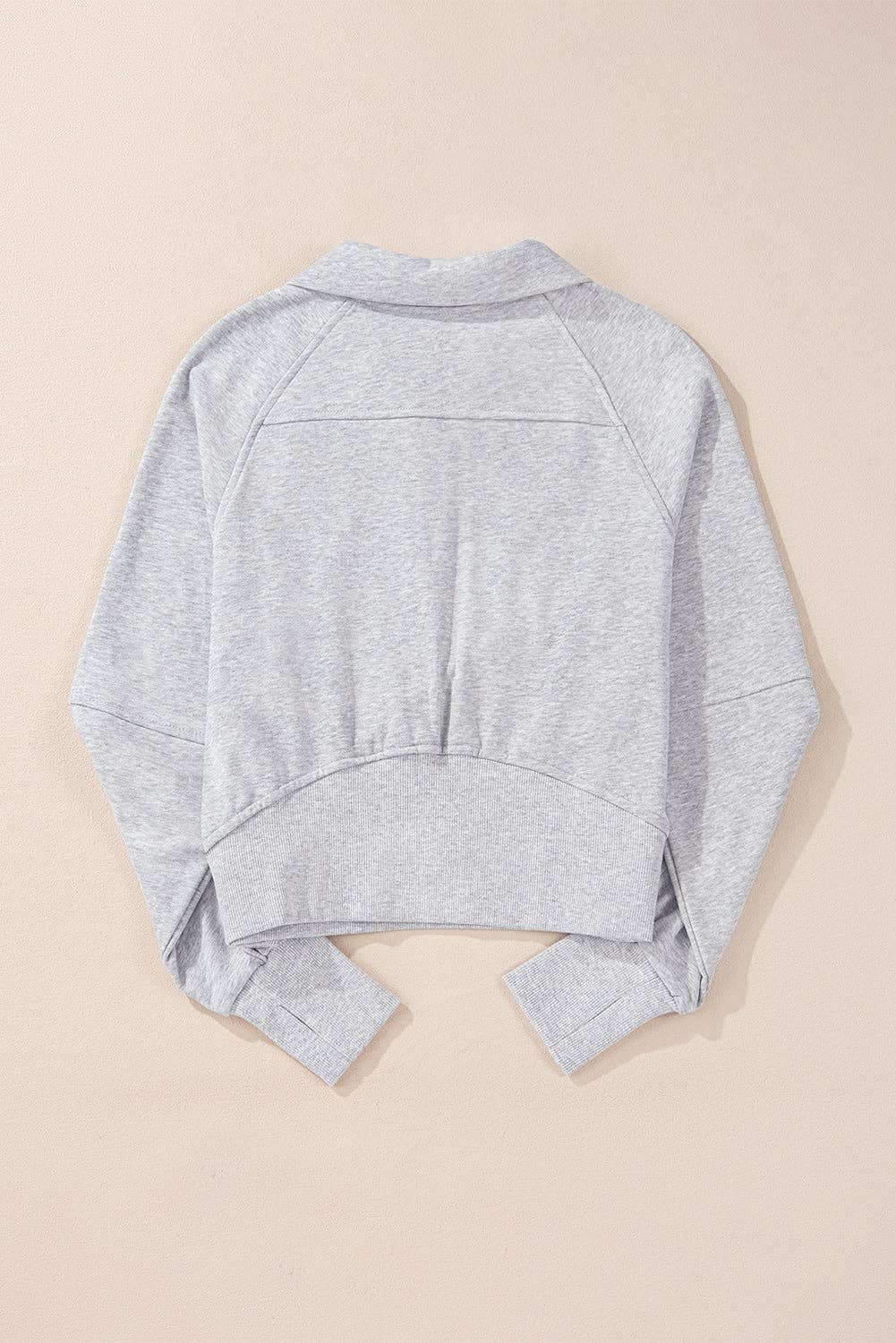Pretty Bash - Quarter Zip Kangaroo Pocket Sweatshirt: Light Grey / XL
